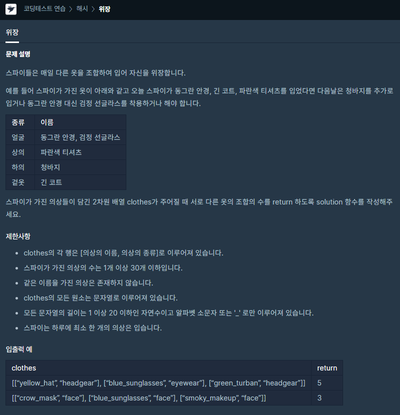 URL: https://programmers.co.kr/learn/courses/30/lessons/42578