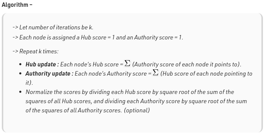 참고: HITS Algorithm Wikipedia, GeeksforGeeks